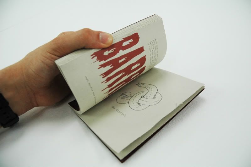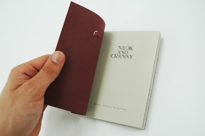 My book is designed to firstly explore the animals in their concealed state, giving only small clues as to what kind of animal they might be and how they might defend themselves. Secondly, with the aid of perforated french folds, the book uncovers the animal and enters the miniature world of their defense mechanisms. The animal in question is named and supported by typographic representations of their defense mechanism.